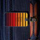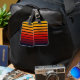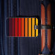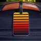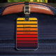 Multicolor striped design inspired by a sunset. Minimalist design in dark blue, and different shades of pink, red, orange, and yellow. Easy to customise with your name, phone or/and address.