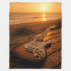 A guitar rests by the shore as the sunset paints the horizon in warm golden tones. The perfect blend of music and nature, delivering calm, inspiration, and the feeling that every chord resonates with the fading light of the evening.