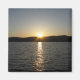 In Pittsfield, Massachusetts, the sun rests on a low, silhouetted mountain range behind Onota Lake. The water spans from the base of the mountains to a bit of dark shore at the bottom of the photograph. Ripples cover the lake's surface and break up the golden reflection of the sunset.