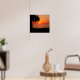 This is a beautiful image of the sun setting over the ocean. The palm tree and the beach is a silhouette. This is very relaxing to look at and will remind anyone of a wonderful vacation.