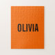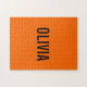 Sunset Orange Modern Name | Trendy Minimalist Jigsaw Puzzle