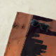 A beautiful watercolor painting of a city at sunset with a multicolor sky, the city is locates seaside and there are reflections on the water.