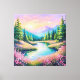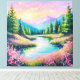 Vibrant depiction of a tranquil natural scene featuring a serene river, blooming trees, and vivid colours capturing a radiant sunset.
