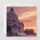 Painting of sunset with orange sky in Venice. Basilica di Santa Maria della Salute in Venice, Italy.