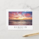 Photo postcard of a colourful sunset with great clouds over the North Sea and the beach of Kijkduin on a summer evening in The Hague at the west coast of the Netherlands with a white edge and in a white box the text 'Kijkduin, Netherlands'. The box has lines in red, white and blue, the colours of the dutch flag.