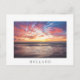 Photo postcard of a colourful sunset with great clouds over the North Sea and the beach of Kijkduin on a summer evening in The Hague at the west coast of the Netherlands with a white border and the text 'Holland'.