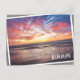 Photo postcard of a colourful sunset with great clouds over the North Sea and the beach of Kijkduin on a summer evening in The Hague at the west coast of the Netherlands with a white edge and the text 'Kijkduin'. The image is a bit rotated to create the illusion of it laying loose.