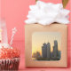 Souvenir photo sticker with the skyscrapers in the skyline of the commercial centre of Doha, the capital of the Arabian Gulf country Qatar at sunset.