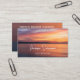 This design features a sunset photo by Destei in orange and purple tones, creating a calm, nature-inspired background. A fitting choice for yoga instructors or wellness professionals seeking a peaceful and grounded visual style. Both sides have personalizable text areas perfect for writing your name, profession and contact information.