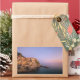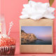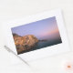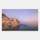 Rectangular photo sticker with the purple sky at sunset over the lovely village Manarola, built on the rocks above the Mediterranean Sea at the coast of the Cinque Terre area in Liguria, Italy.