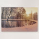 Sunset over park with small frosty lake jigsaw puzzle