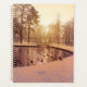 Sunset over park with small frosty lake planner