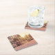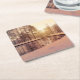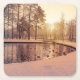 Sunset over park with small frosty lake square paper coaster