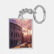 Painting of sunset over Rome Colosseum in Rome, Italy. Beautiful dramatic sky during sunset with sun rays in Rome