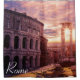 Painting of sunset over Rome Colosseum in Rome, Italy. Beautiful dramatic sky during sunset with sun rays in Rome.