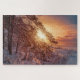 Sunset over sea and snowy pine tree jigsaw puzzle