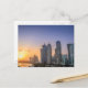 Postcard of a colourful sunset over the skyline with the skyscrapers on the Corniche in the city centre of Doha, capital of the Gulf country Qatar.
