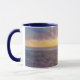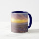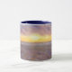 This beach mug features my original photograph of a sunset over the ocean. I processed my photograph with an oil pastel painterly style for an artsy flair. The handle and inside of the cup are dark blue to complement the artwork.