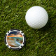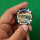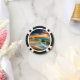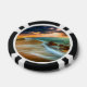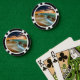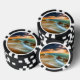 This custom poker chip set features an abstract painting of a sunset setting over the coastal shore.