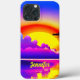 Introducing this personalised cell phone case featuring a vibrant and colourful digital art of a sun setting on water. This stunning accessory combines the beauty of nature with the practicality of protecting your phone, creating a personalised and visually captivating addition to your device.