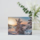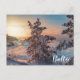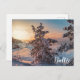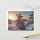 Sunset over winter snowy sea coast postcard