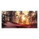 Sunset panorama in the coniferous forest and sea. Wooden path and stairs in a pine forest. The White Dune and Baltic see at Saulkrasti, Latvia