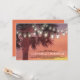 This beautiful beach wedding invitation features a large palm tree and a brightly coloured sunset with edison style string lights glowing brightly. Perfect for a tropical or beach themed wedding.