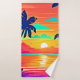 A vibrant and colourful illustration of a tropical sunset over a calm ocean with palm trees silhouetted against the sky. Perfect for creating a relaxing and serene atmosphere (This Design Made With AI). Place Order Today and Embrace the Joy of Shopping!