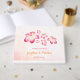 This wedding guest book features watercolor pink plumeria flowers on a watercolor background. You can personalise it with bride and groom names and wedding date both on the front cover and the spine. This guest book is part of the Sunset Plumeria Wedding Collection which includes a full range of matching wedding stationery such as wedding invitations, reply cards, information cards, address labels, postage stamps, envelopes, favour boxes, wishing well cards, programs, menus, bridal gifts and much more. Visit the collection page in our store to see the full range of products that you can personalise for your wedding.
