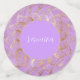 Stylish and glitzy sunset purple with gold monogrammed party confetti.