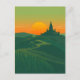 Sunset Rice Terraces and Temple Vintage Landscape Postcard