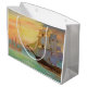 This gift bag captures the tranquil beauty of a sunset at sea with sailing ships silhouetted against the warm, inviting hues. The design evokes a sense of calm and wanderlust, making it perfect for presenting gifts to sailing enthusiasts or anyone who appreciates the serene magic of the ocean.