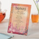 Sunset Serenade Pedestal Drinks Menu – Fully Customisable Design Sip in style with this freestanding drinks menu from the Sunset Serenade collection, designed to dazzle your guests and elevate your bar setup. Featuring the same golden amber and soft rose watercolor sky, silhouetted skyline, and lush floral accents in coral, cream, and teal, this pedestal sign brings warmth, romance, and visibility to your celebration. 🍸✨