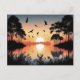 A stunning sunset scene over a peaceful lake, with flying birds and silhouetted trees creating a calm and reflective mood. Perfect for home décor and nature lovers alike