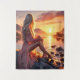 A tranquil scene of a woman sitting peacefully by the water at sunset, surrounded by mountains and a warm, glowing sky. This calming image captures the beauty of nature and reflective serenity, perfect for a captivating wall art piece.