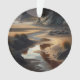 "Capture the Essence of New Zealand: Immerse yourself in the serene beauty of the South Island's rugged coastline with this captivating image. Bathed in the golden glow of a sunset, the sandy beach unfolds before your eyes, adorned with dark rocks and hues of brown sand. A gentle stream meanders through the landscape, its path leading gracefully to the vast expanse of the ocean. As warm sunlight casts long, enchanting shadows across the scene, you'll feel transported to a tranquil oasis of natural wonder. Perfect for those who yearn to bring the breathtaking landscapes of New Zealand into their home."