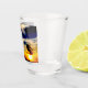 A shot glass featuring a photo of a sunset.