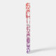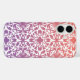 This beautiful patterned iPhone case features a gradient ombre effect in rich sunset hues of coral and violet, with a white Spanish tile lattice pattern overlay.