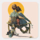 Artist: Norman Rockwell | Boy & girl watch sunset from bench, forlorn puppy