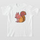 A warm, hand-inked squirrel illustration with pink body and orange-yellow tail, bold outlines and vintage linework. Ideal for cozy apparel and autumn-themed items.