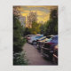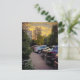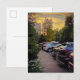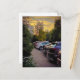 Designed by Sotnichenko, this announcement postcard carries a quiet weight—capturing the end-of-day hush where headlights dim, trees lean into golden air, and concrete stills beneath a bloom of twilight. There’s no staged drama here, just an honest moment suspended between movement and memory. Use it to announce what matters with calm clarity: an event, a reunion, a gathering, a promise.