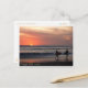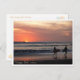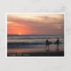 Experience the magic of a Bali sunset at Canggu Beach with this postcard capturing the final moments of a surfing session. As the sun dips below the horizon, surfers wrap up their day and friends gather on the sand, creating a vibrant, serene scene full of tropical charm and Balinese coastal life.