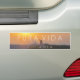 Costa Rica bumper sticker printed with photo of surfer at sunset in Playa Avellanas printed with the words "Pura Vida" Costa Rica in white.