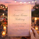 Sunset terrace soirée theme featuring a warm peach and blush gradient with a soft textured finish, framed by a thin gold border and refined script typography. Designed for outdoor patio gatherings, terrace dinners, and evening cocktail hosting with a polished, feminine layout.