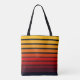 Multicolor striped design inspired by a sunset. Minimalist design in dark blue, and different shades of pink, red, orange, and yellow.