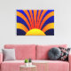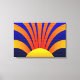 Sun Graffiti brick wall is a digital work of art with a dark blue gradient background and yellow redish orange gradient sun at the bottom, sun beams beaming up and outward.