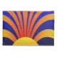 Sun Graffiti brick wall is a digital work of art with a dark blue gradient background and yellow redish orange gradient sun at the bottom, sun beams beaming up and outward.