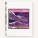 a soft-cover spiral notebook with the art print "Sunset Wave" as the cover image with a deep purple back.