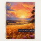 This planner features a vibrant illustration of a sun setting over a golden wheat field and purple flowers. The design is the same on the front and back covers. Personalise the front with the current year.