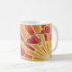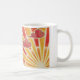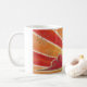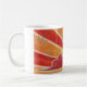 A gold and orange sun sets and the wind blows red and pink clouds across the sky. Mug with a gold, orange, red, pink and white customisable design for you to personalise with your own text, images and ideas. Available in all style options. An original coloured pencil and metallic ink drawing by Jess Perry.